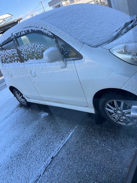 2025.11.12 ブログ え、雪… おはようございます。 テレビを見ていたら昨日、札幌ではたくさん雪が降ったので 道で滑らないように注意してください、とやっていました。 札幌、大変だなーもう雪かーなどとのんきなことを思っていたのですが、 カーテン越しに窓の外を見ると白っぽい…。 こっちも雪じゃないですか!! びっくりして車の雪を急いでかいて暖気して出勤しました。