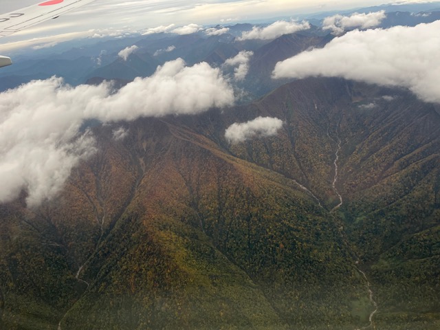 2025.10.01 ブログ 前半戦、終了しました おはようございます。 一昨日、日曜日に東京で開催されていた上士幌町のイベント、 「とかち・上士幌ライフ」から帰ってきて少し落ち着きました。 とてもとてもたくさんの方に来ていただき、びっくりとともに とてもうれしかったです。ありがとうございました!! 帰りの飛行機は、天候の関係でか日高山脈の上を通るルートで 帯広空港に向かい、窓からはいつもと違う景色を見ることが出来ました。 日高山脈の山頂付近も紅葉が始まっていました。 上士幌町の三国峠も今、紅葉がきれいなようです!!