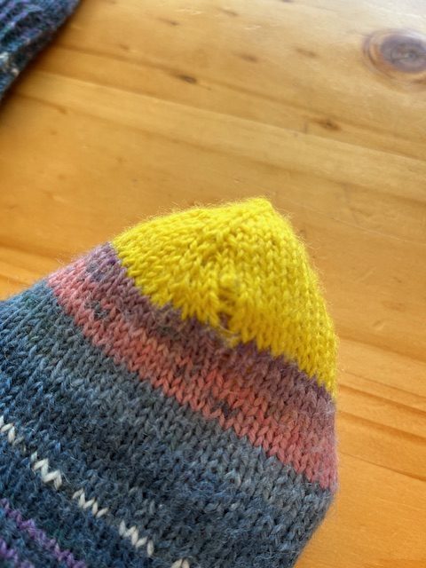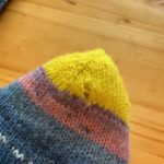 なんてことでしょう。しかも編み始めはつま先!履くまで気づかないなんて…。
