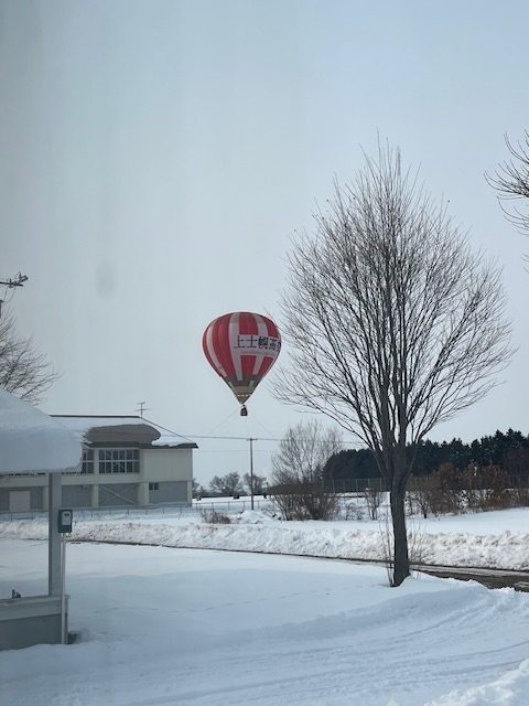 2024.01.31 ブログ 気球が上がっていました こんにちは 今日からまた気温の低い日が続くようです。 今日の夜は久しぶりに少し雪が降る予報も出ています。 明後日、モデルハウス1号に入居の方がいるので準備に行きました。 モデルハウス1号は上士幌高校の隣にあります。 上士幌高校の気球部が 気球を上げているところに出くわし、 ラッキーでした! 来月、10日、11日には町でウインターバルーンミーティングも ありますよ♪